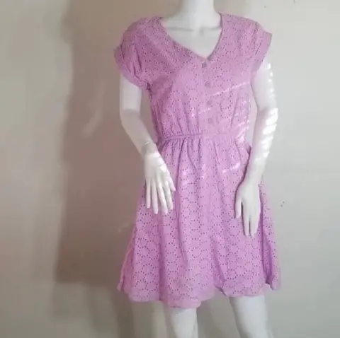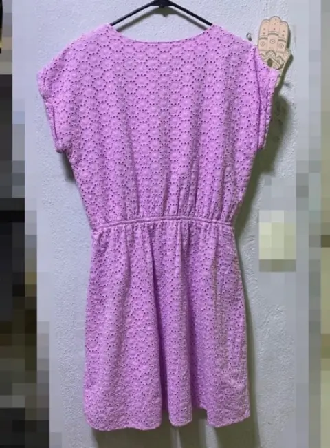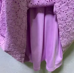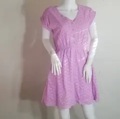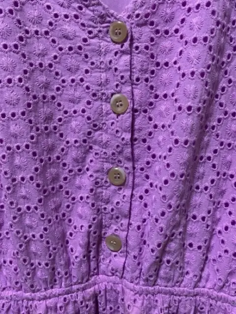 Vestido de encaje con fondo color lila con botones al frente que se pueden abrir, elástico en cintura.Producto importado 🇺🇸Material: 100% algodón Forro 100% poliéster Medidas: Largo 88 cm Cintura 36 cmEstira hasta 52 cm Pecho (axila a axila) 55cm