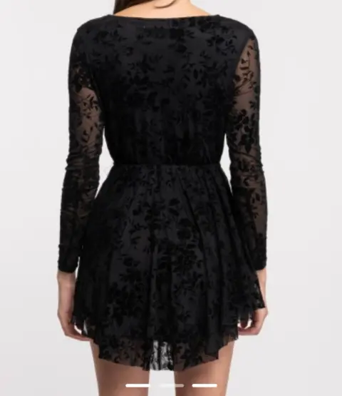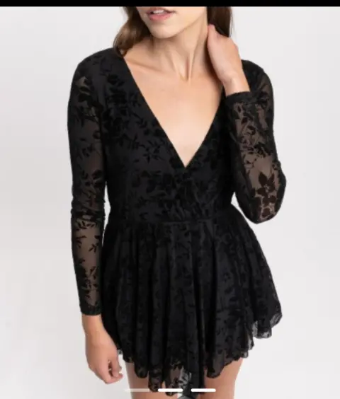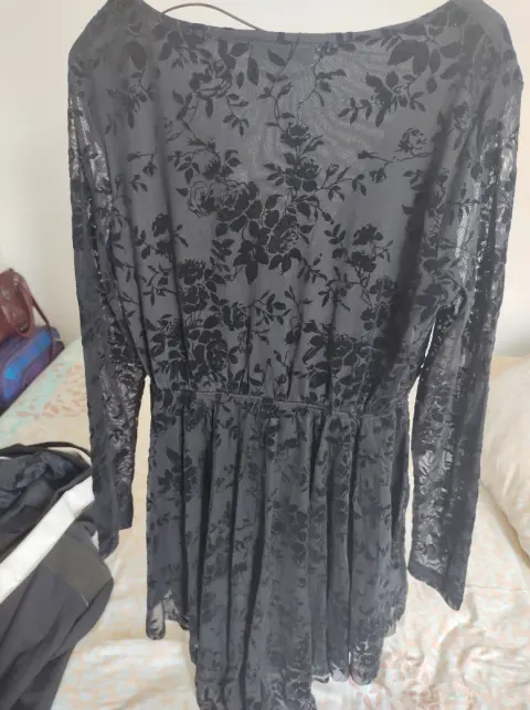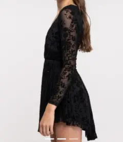 Vestido de encaje transparente. Vestido escotado en V con encaje transparente de las ma gas y con forro en lo demás, Resorte en la cintura amolda muy bonito