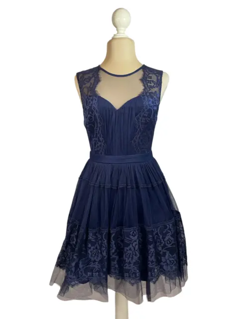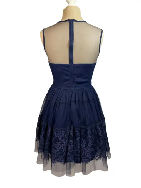 Vestido de encaje y tul. Vestido de Encaje y Tul Azul Marino - Elegancia RománticaEste encantador vestido de encaje y tul en azul marino es la opción perfecta para eventos especiales. Con detalles de encaje en el cuerpo y una falda en capas de tul, este vestido emana un aire romántico y sofisticado. Su escote ilusión añade un toque de delicadeza, haciéndolo ideal para bodas, cenas o cualquier ocasión elegante.Color: Azul marino.Material: Encaje y tul con forro interior.Corte: Ajustado en la parte superior con falda en A de tul.Talla: SPerfecto para ocasiones especiales como bodas, fiestas o cenas formales.Este vestido es la combinación perfecta de elegancia y feminidad, ideal para quienes buscan un look romántico y sofisticado. ¡No dejes pasar la oportunidad de deslumbrar en tu próximo evento!