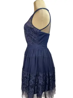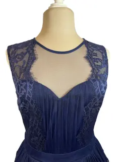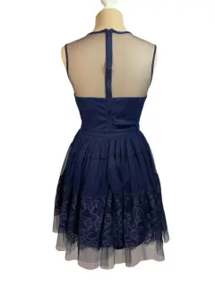 Vestido de Encaje y Tul Azul Marino - Elegancia RománticaEste encantador vestido de encaje y tul en azul marino es la opción perfecta para eventos especiales. Con detalles de encaje en el cuerpo y una falda en capas de tul, este vestido emana un aire romántico y sofisticado. Su escote ilusión añade un toque de delicadeza, haciéndolo ideal para bodas, cenas o cualquier ocasión elegante.Color: Azul marino.Material: Encaje y tul con forro interior.Corte: Ajustado en la parte superior con falda en A de tul.Talla: SPerfecto para ocasiones especiales como bodas, fiestas o cenas formales.Este vestido es la combinación perfecta de elegancia y feminidad, ideal para quienes buscan un look romántico y sofisticado. ¡No dejes pasar la oportunidad de deslumbrar en tu próximo evento!