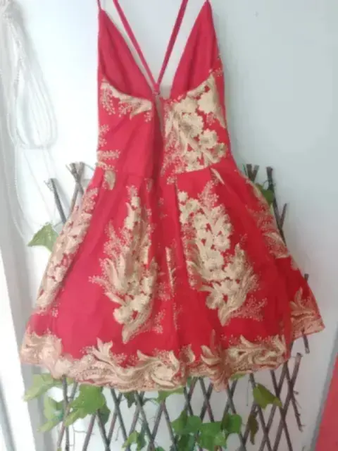 Vestido de fiesta. Hermoso vestido de coctel en color rojo con aplicacines doradas bordadas en perfecto estado solo 1 puesta.