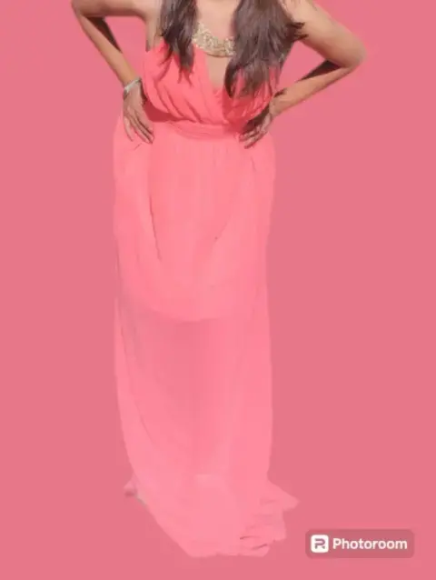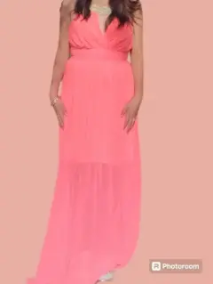 •Marca "Red Clover"•Talla S•Color rosa fosforescente •Es largo, con un fondo hasta abajo de las rodillas •Doble tela, así que no es necesario llevar nada abajo, porque no se nota•Es muy cómodo •Fue utilizado solo dos veces •Lo que más resalta es su collar de brillos, brilla maravilloso •Perfecto para eventos tanto de noche como de día •Es fresco y ligero •Te puedo mandar las tallas exactas, si lo necesitas •El precio puede ser negociable