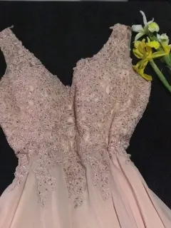 Vestido de fiesta. Bello vestido de fiesta, súper elegante color rosa palo.