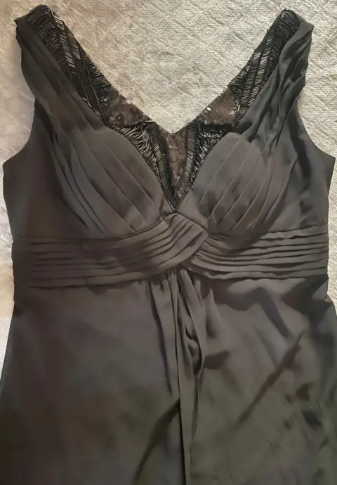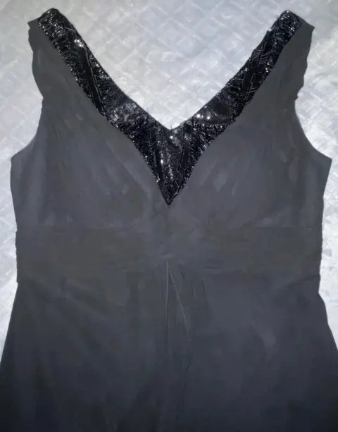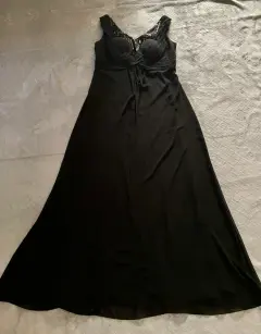 Vestido de fiesta. Vestido largo! Bordado en cuello V, color negro, corte princesa, tela de gasa, es un vestido para fiesta en la noche!
