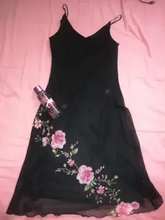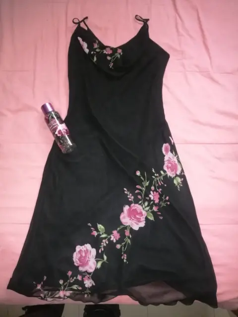 Hermoso vestido negro con flores rosas talla 7 en excelentes condiciones solo se utilizo 1 vez