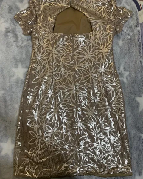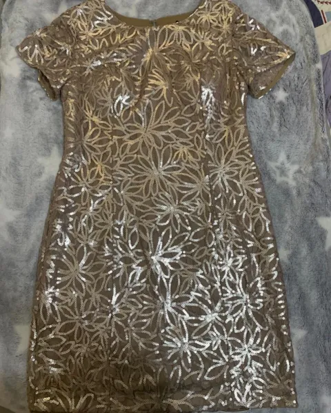 Vestido de fiesta. Hermoso vestido dorado con lentejuela de Mía Paluzzi