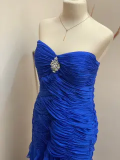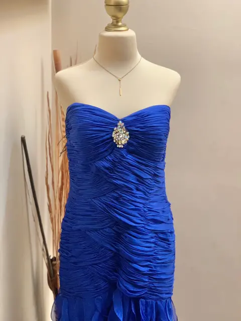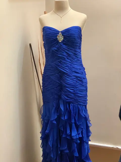 VESTIDO DE FIESTA. HERMOSO VESTIDO EN AZUL REY CINTURA: 45 CM LARGO 120 CM PECHO 45 CM TALLA GRANDE ES SEMINUEVO MUY BIEN CUIDADO,LOS OLANES LOS TIENE EN LA FALDA !!