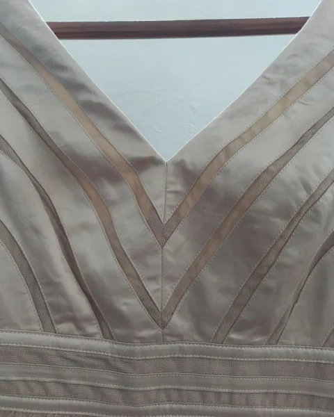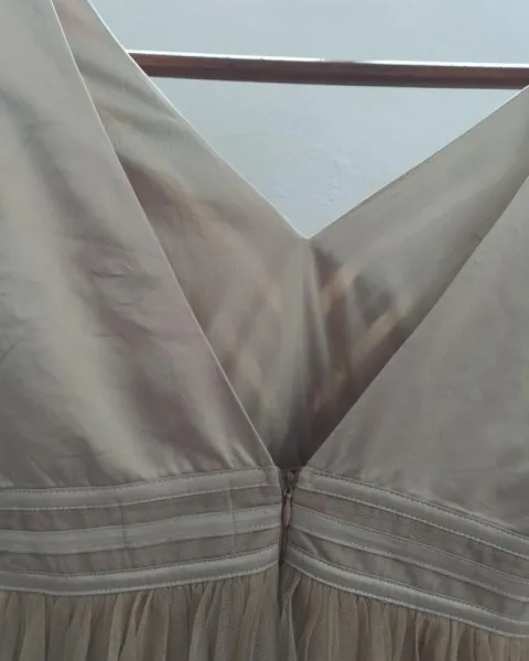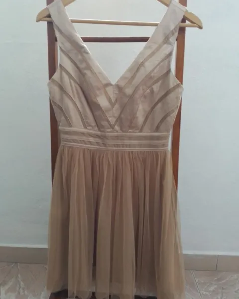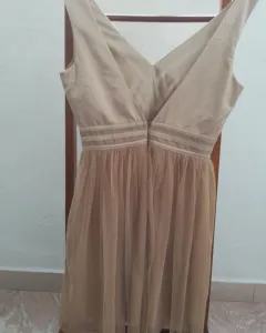 Vestido de fiesta. Vestido de mesh y satín con detalles por estar guardado a la rodilla si eres bajita.