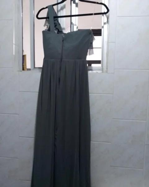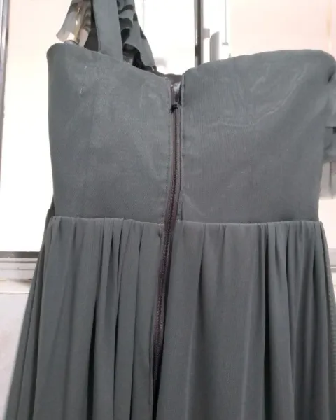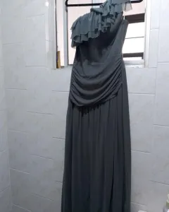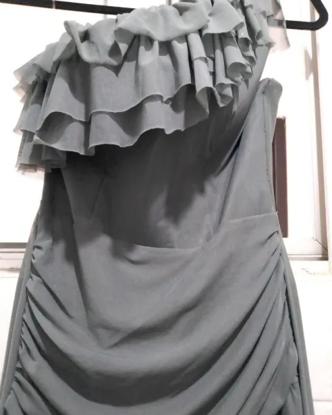 Vestido de fiesta. Vestido gris claro de mesh vaporoso y juvenil