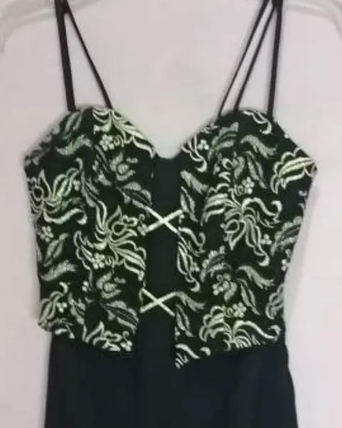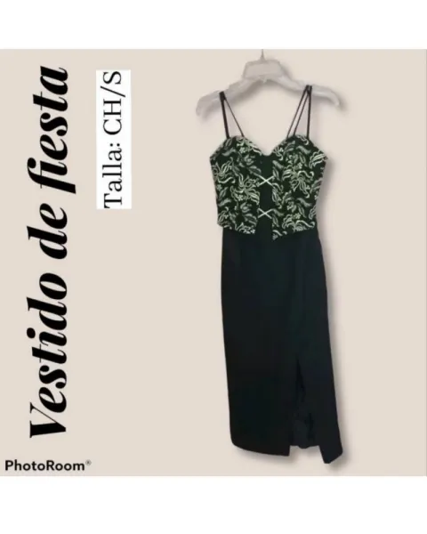 Vestido de fiesta con abertura por un lado.Cuenta con un detalle mínimo que se muestra en la última foto, casi imperceptible (un pequeño agujero en el encaje)