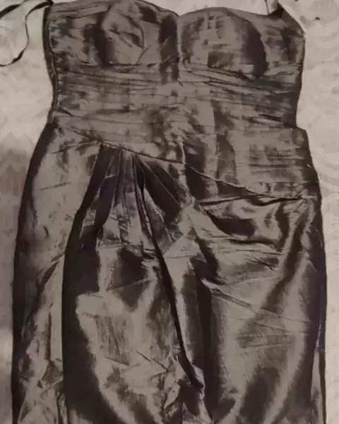 Vestido de fiesta. Con goma pegable en escote y plisado en top