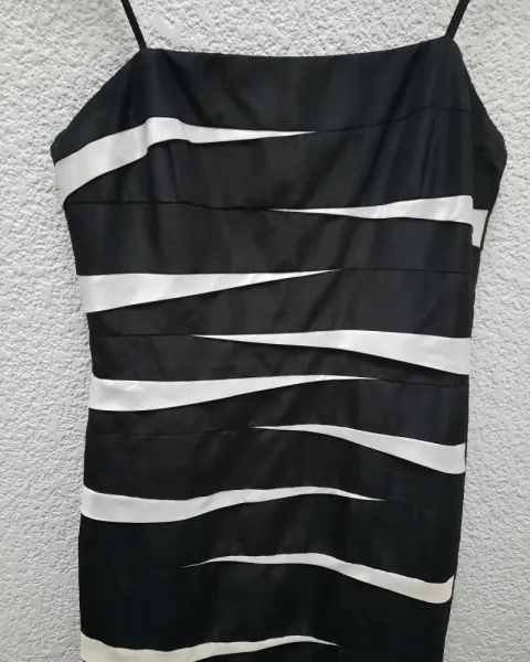 Vestido de fiesta negro con blanco, 42cm de pecho, 38cm de cintura, 125cm de largo.