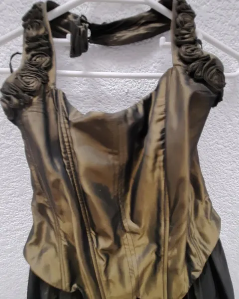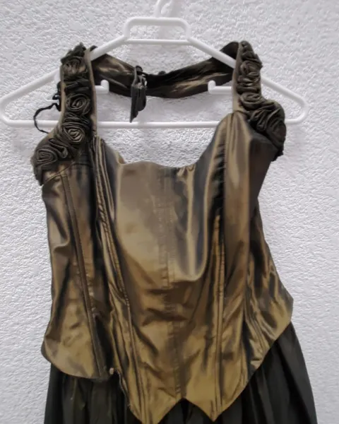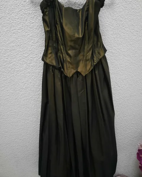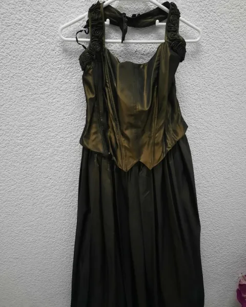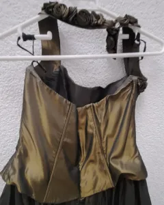 Vestido de fiesta color verde metálico, esta unido corset y falda, 40cm de cadera, 120cm de largo.