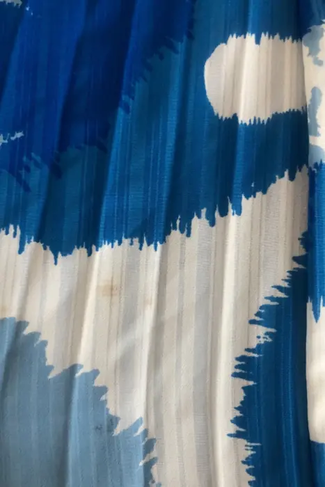 HERMOSO Y FRESCO TIENE 2 DETALLES FOTO(3 Y 4) EL FORRO TIENE DOS PEQUEÑOS JALONES DE HILO CASI NO SE NOTA Y EN LA PARTE TRASERA TIENE UNA MANCHA DE TINTA QUE NO SE PUEDE QUITAR NI EN TINTORERIA PERO CASI NO SE NOTABUSTO 96CINTURA 72TIRANTE 39LARGO FALDA 113