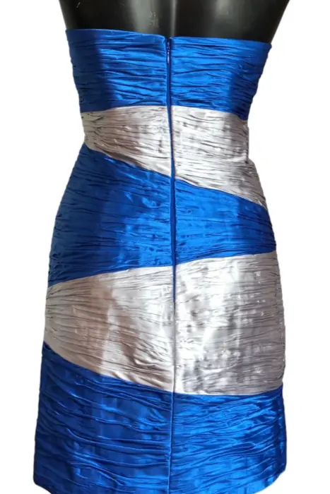 VESTIDO METALICO AZUL/PLATA, SOLO TIENE UN DETALLE EN EL FORRO QUE SE DECOLORÓ EL FORRO DE LA PARTE SUPERIOR PERO ES INTERIOR (FOTO 4), POR LO DEMÁS ESTÁ IMPECABLEBUSTO 94CINTURA 80CADERA 88LARGO 71