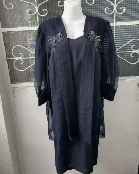 Vestido de fiesta. Conjunto de vestido con sacoPara una fiesta de graduacion, boda, XV años, etc.Talla: 389Color: Azul marinoMedidas:~Vestido: *De axila a axila trae ajustable de 43 cm a 50 cm*Largo desde el tirante 90 cm~Saco: *De axila a axila 60 cm*Largo desde los hombros 77 cmCupón: JanMoPBn0H