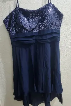 Hermoso vestido para fiesta con cola de pato, al frente trae lentejuelas.Es un hermoso vestido con cola de paro, es decir el vestido es corto sin embargo trae tela transparente más larga que el vestido.Trae copas ligeras.Talla 36