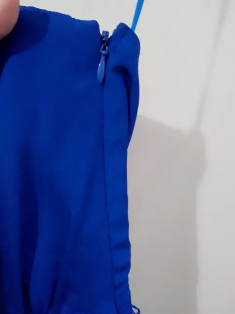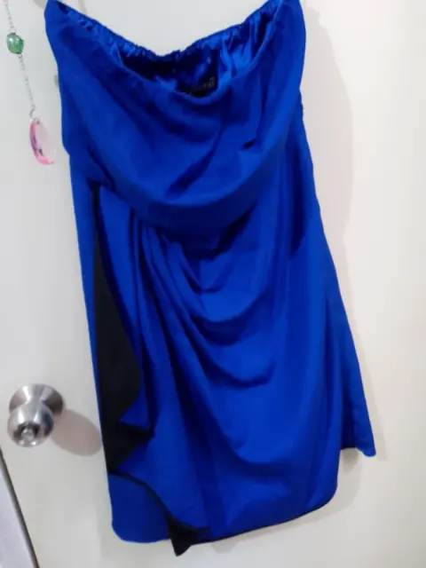Vestido de fiesta azul rey. Vestido corto de fiesta, color azul rey. Tiene cierre lateral, no incluye cinto. Es estraple