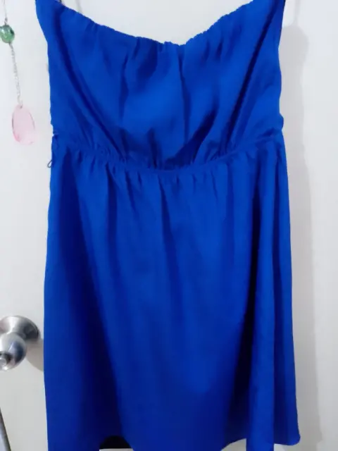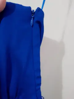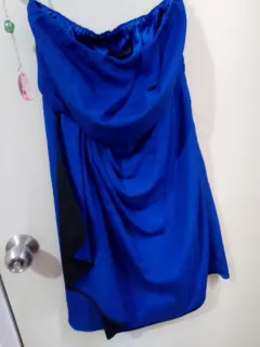 Vestido corto de fiesta, color azul rey. Tiene cierre lateral, no incluye cinto. Es estraple