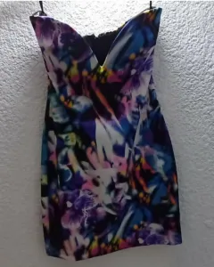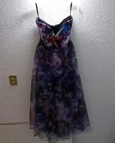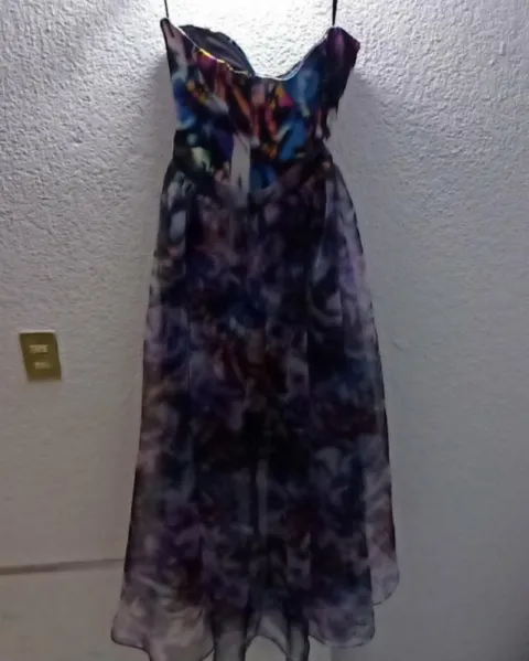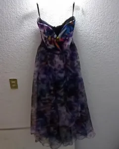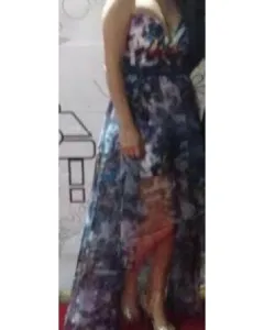 Hermoso vestidoSin detalles multicolorCorto de la parte de enfrente y con cola larga