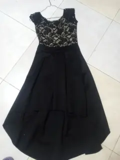 Vestido de fiesta cola de pato. Vestido negro con encaje. En la parte de abrriba escaje negro y fondo beige, en la parte de abajo falda negra con cola de pato, ideal para fiesta.