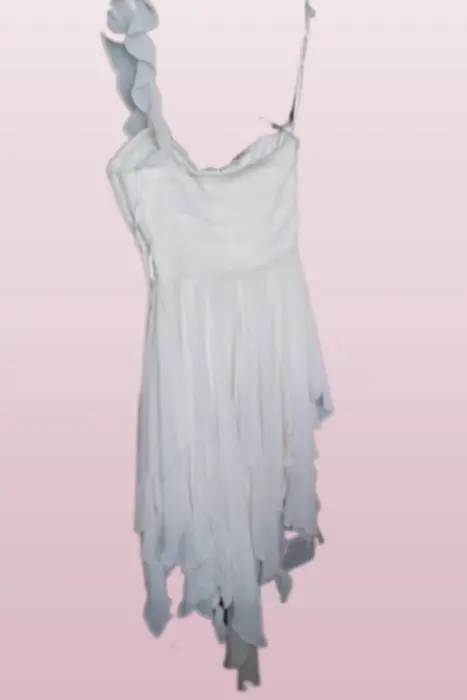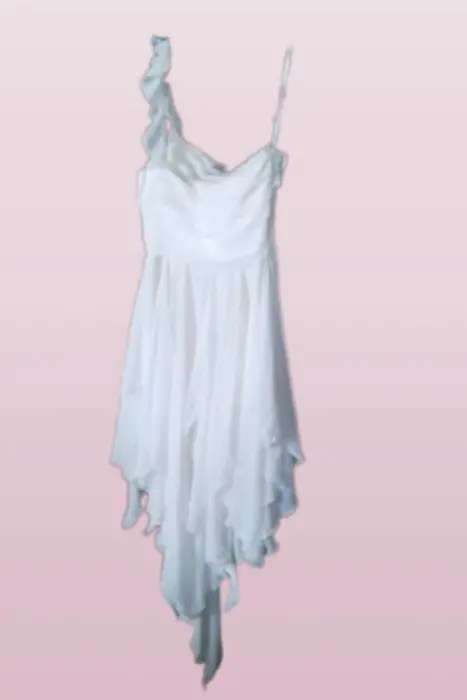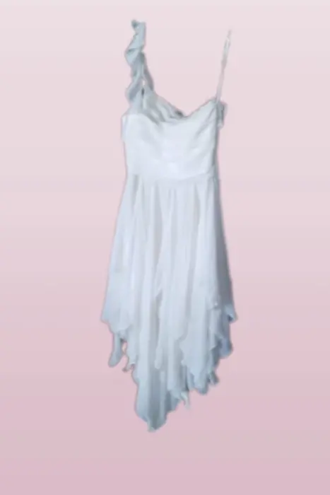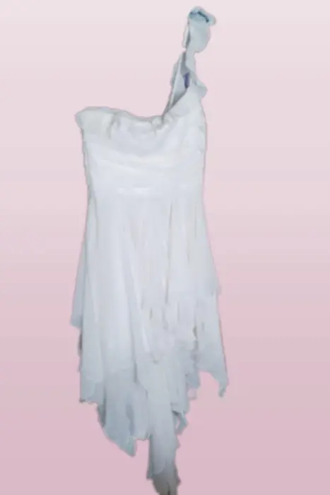 PRECIOSO VESTIDO DE FIESTA, COLOR HUESO, IDEAL PARA GRADUACIÓN O COCKTAIL, AJUSTA PERFECTO EL TORSO CON UN LINDO TIRANTE, FALDA LLENA DE CORTES ASIMÉTRICOS QUE CAEN SUPER LINDO, ES UN VESTIDO DIVERTIDO Y ÚNICO QUE TE HARPA BRILLAR EN CUALQUIER FIESTA.