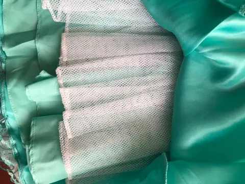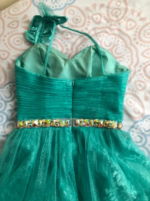 Vestido de fiesta color menta. Ideal para jovencita graduación o fiestaAdorno en el hombroAplicaciones imitación piedras en la cintura Doble forro que da seguridad( no se transparenta)MedidasAxila 36 cmCintura 32 cmLargo71 cm