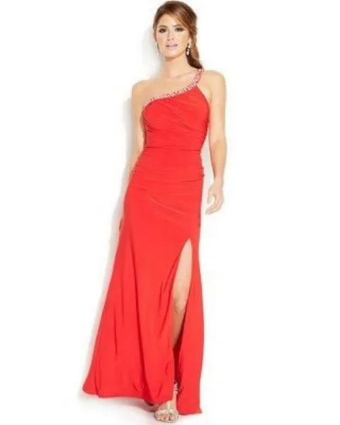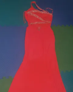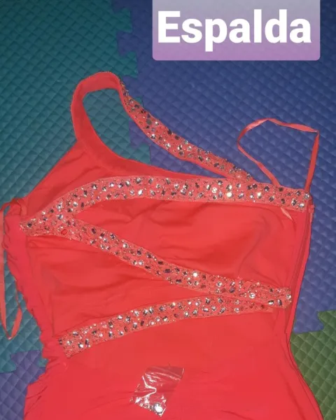 Vestido largo con pedrería, con abertura en la pierna, color coral intenso tipo neón muy bonito . Talla 3/4 . Marca Adrianna Papell.