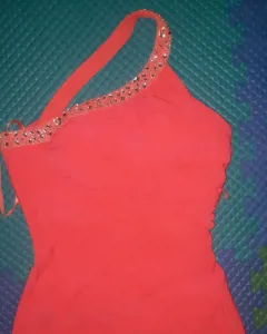 Vestido de fiesta con pedrería. Vestido largo con pedrería, con abertura en la pierna, color coral intenso tipo neón muy bonito . Talla 3/4 . Marca Adrianna Papell.