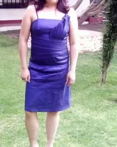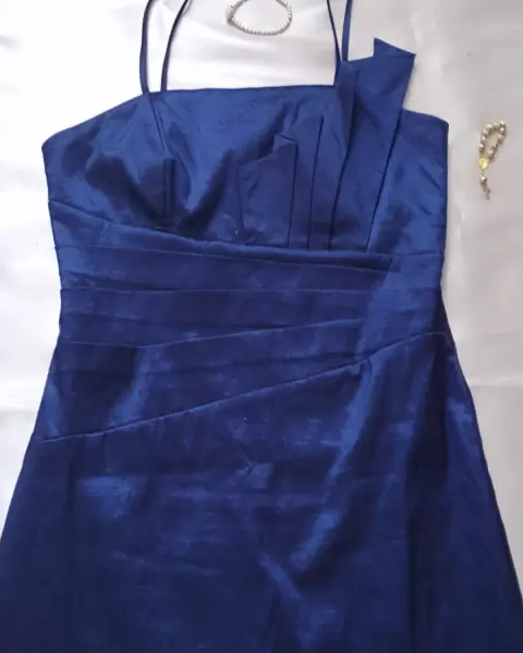 Vestido de Fiesta Corto. Vestido corto azul tornasol, para una fiesta formal, de dia. Se uso una sola ocasion y es un vestido que te hace im lindo cuerpo. La medida del busto 40 centímetros y largo 79 centímetros.