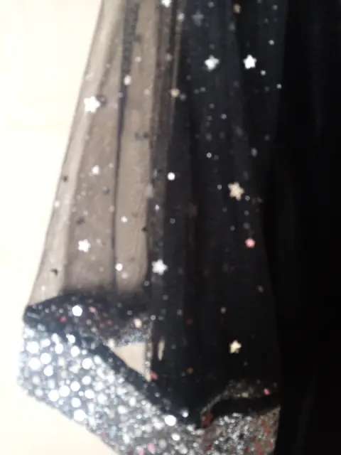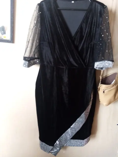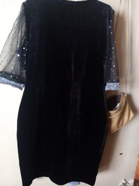 Vestido de fiesta dama. Vestido de fiesta para dama de tela terciopelo negro elástico talla grande a la rodilla con mangas de tul con adornos, una sola puesta cómodo 6 elegante