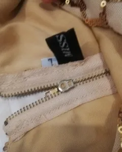 Color dorado con lentejuela, estraples, forma sirena, largo y se ajusta bonito