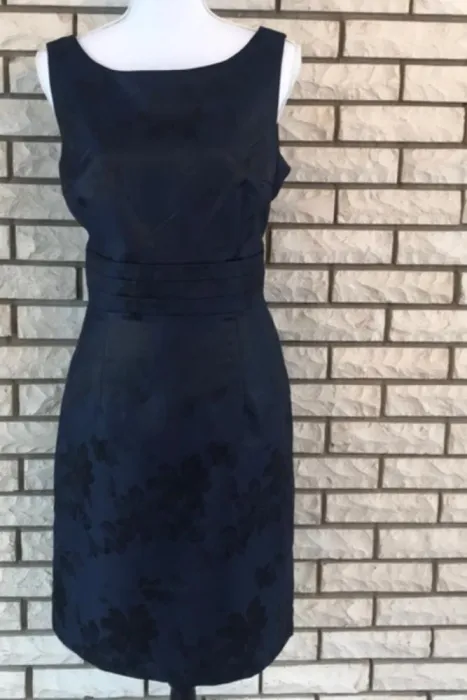 Vestido de fiesta H&MEs azul marino con flores negrasEs ceñido en la cinturaCierre en la espaldaViene forrado por dentroTalla 10. Viene un poco reducidoMedidas aproximadas: 39cm de axila a axila,36cm de cintura, 95cm de largo desde el hombro.*TODAS MIS PRENDAS SE DESINFECTAN CON LYSOLLAVANDERIA PARA TU MAYOR TRANQUILIDAD*