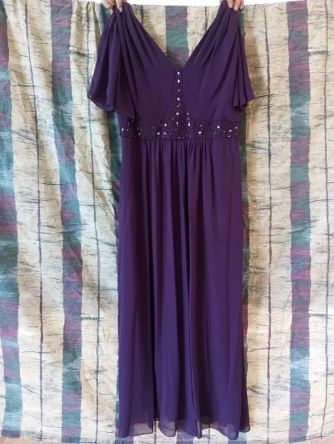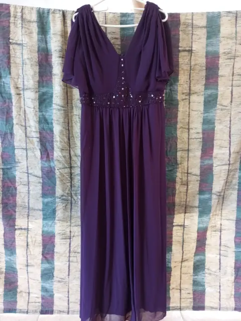 Vestido de fiesta morad. Vestido de noche morado, solo una puesta, en excelente condición talla XL (38)