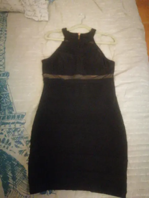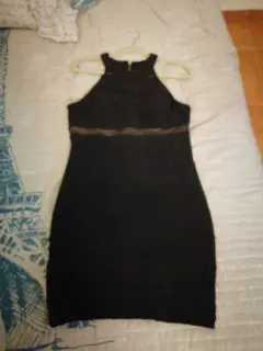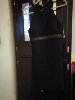 Vestido negro, para fiesta corto llega a la rodilla talla grande pero viene reducido, puesto dos veces