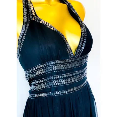 Vestido de fiesta negro con lentejuelas S. Vestido de noche maravilloso, le faltan un par de lentejuelas pero es imperceptible. Medidas: Pecho: 88cmCintura: 70cmCadera: 90cmLargo: 80cm