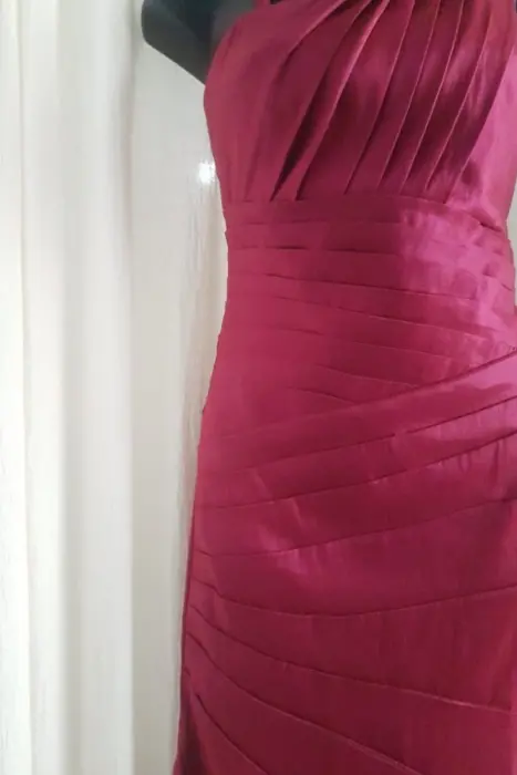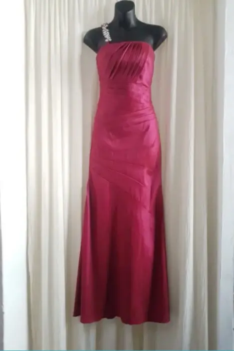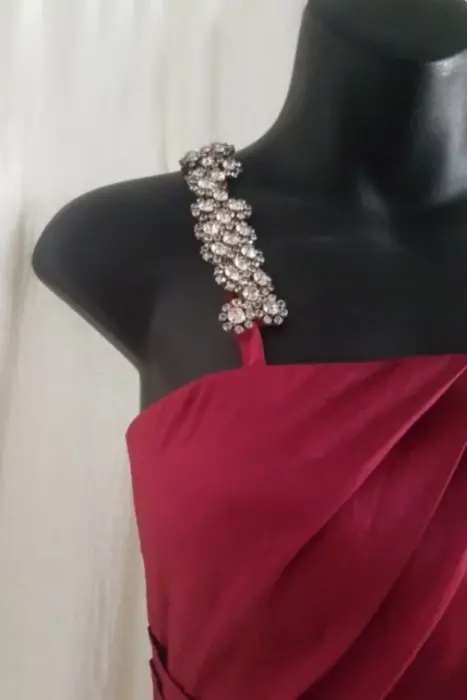 Hermoso vestido de fiesta. Escote cuadrado, tiene un tirante con detalles en joyería que se puede quitar (descoser) para que el vestido quede strapless.El diseño estilo drapeado acomoda muy bien al cuerpoExcelente calidad. Sin detalles.-❤️