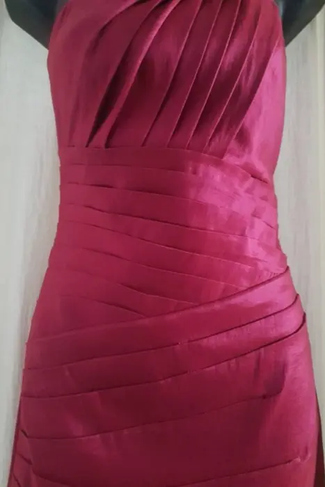VESTIDO DE FIESTA ROSA MEXICANO. Hermoso vestido de fiesta. Escote cuadrado, tiene un tirante con detalles en joyería que se puede quitar (descoser) para que el vestido quede strapless.El diseño estilo drapeado acomoda muy bien al cuerpoExcelente calidad. Sin detalles.-❤️