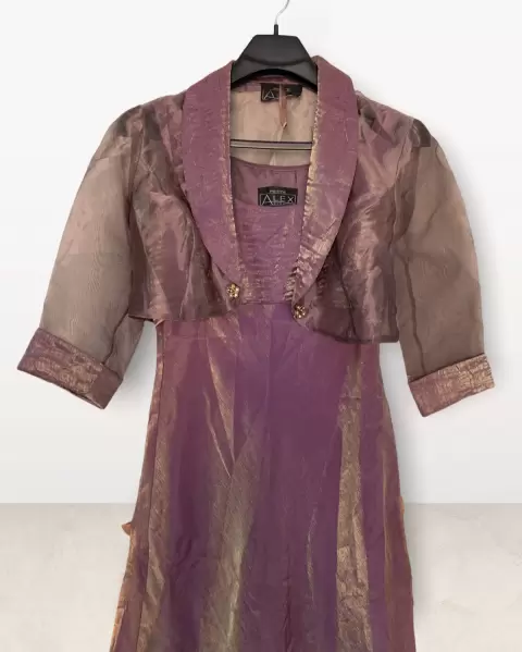 Hermoso vestido tornasol con torero, entalla muy bien arriba y abajo más amplio para hacerlo más cómodo, ya sea con el toreo o sin él se ve espectacular