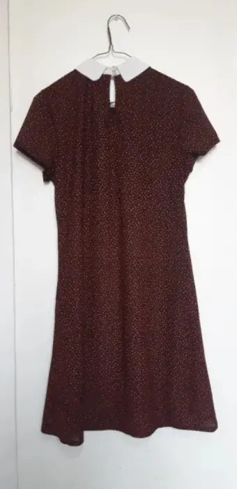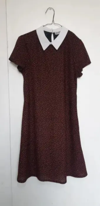 Hermoso vestido de florecitas en color rojo, tiene cuellito blanco, esta muy lindo, TIENE UNA SOLA PUESTA. Talla 8