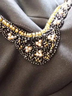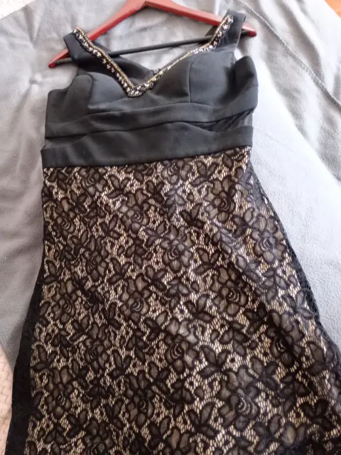 Vestido de gala color negro con fondo beige. Hermoso vestido para un evento de gala. Excelente estado y excelente precio. Para usarse en interiores o exteriores
