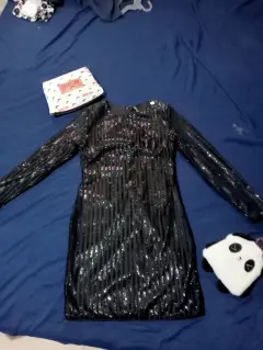 Vestido corto de manga larga Lentejuelas negro Talla mediana NuevoVestido de noche