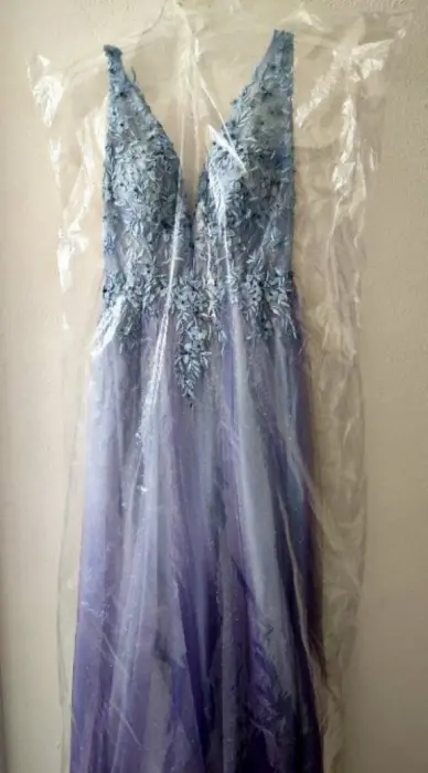 Lo amo! Lo usé para mi graduación, pero sé que no lo volveré a usar, así que espero que alguien más pueda hacerlo🤭Talla: SBusto: 80cm (copa 34B)Cintura: 66cmLargo: 140cm-Tiene efecto degradado va de azul a morado🤩-En la parte del tul viene un poco desgarrada la primera capa, pero igual se puede arreglar -Tiene lentejuelas y pedrería alrededor-Es corte tipo princesa 👸🏻