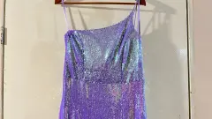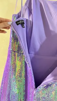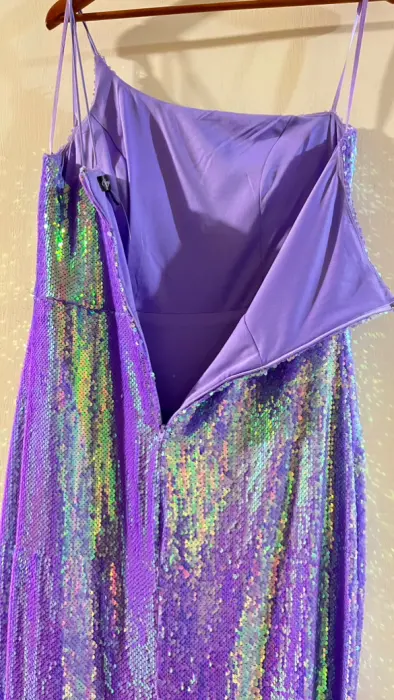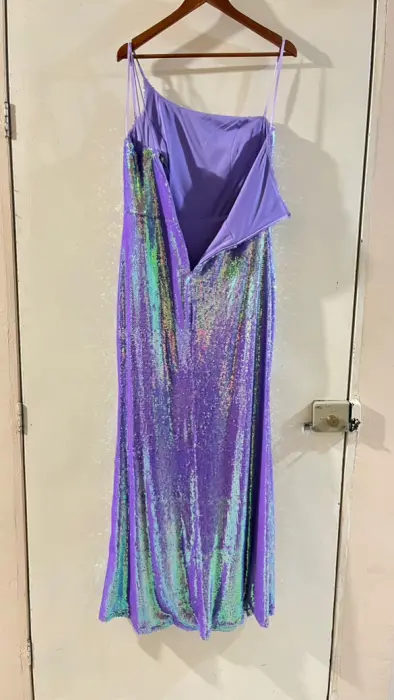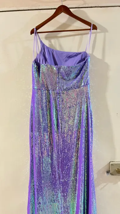 Vestido de lentejuela tornasol talla L con abertura en pierna, nuevo.