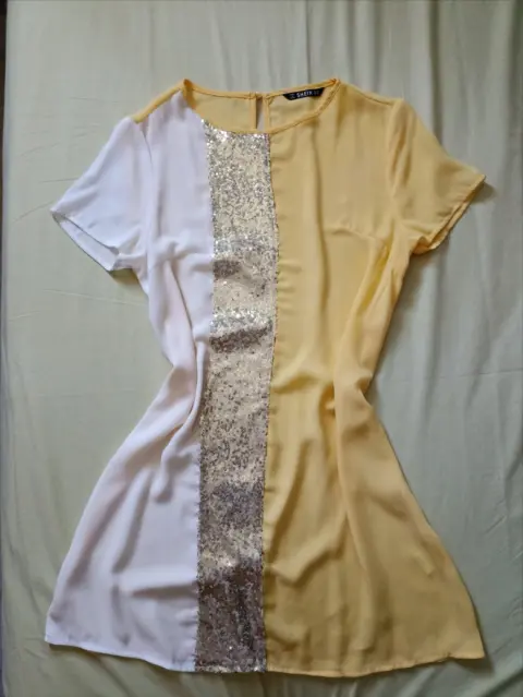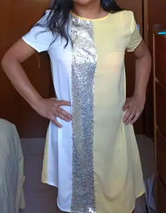 Vestido de lentejuela sencillo. Marca Shein, dice y.Xch, pero la mayoría de esa marca viene amplia, yo soy ya mediana y me sigue quedando, sin embargo lo quiero sacar porque considero ya no es mi estilo además que solo lo usé para un evento social.