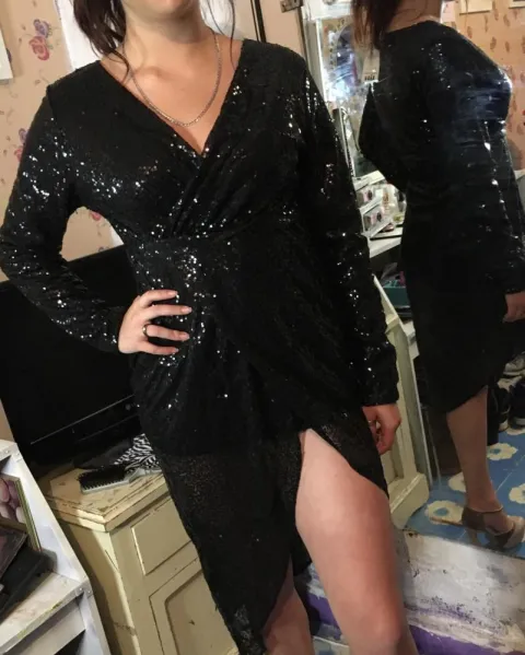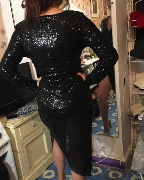 Vestido de lentejuelas. Con abertura en pierna ideal para talla 5-7 forro interno suave que evita transparencias