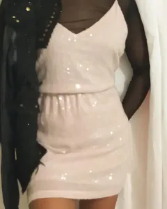 Vestido de lentejuelas color rosaEn exelentes condicionesEstá súper bonito queda cortitoCon precioso escote