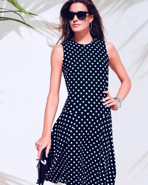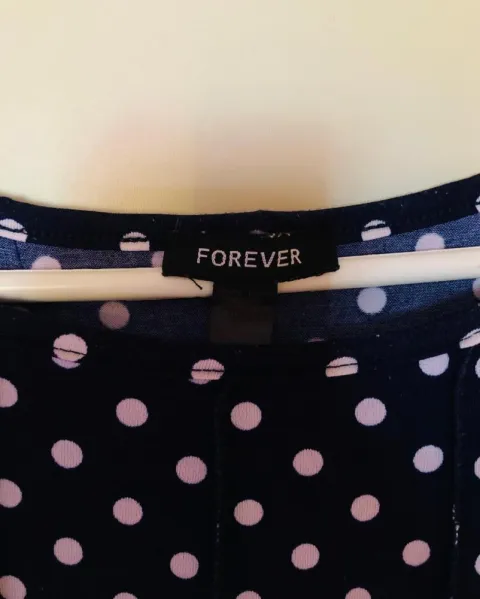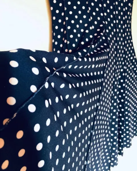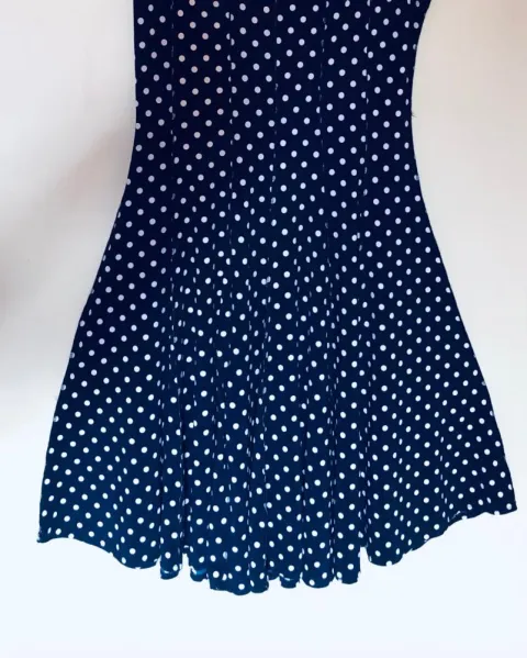 Vestido de lunares. Tela de elástico alto, algodón, nada calurosa, no tiene ningún detalle estético, llega arriba de la rodilla mide de largo 100cm•