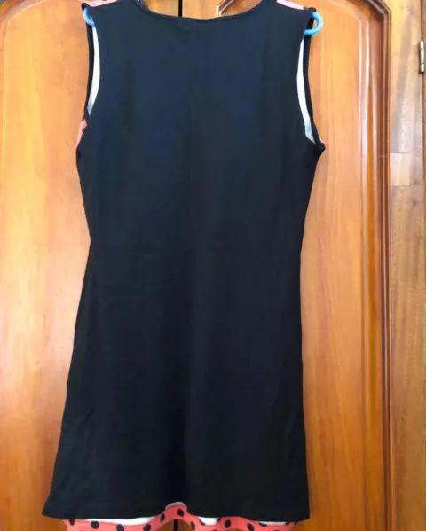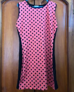Vestido marca amor, corto arriba de rodilla, sin mangas, estampado de frente de lunares, usado pero en buenas condiciones talla 34