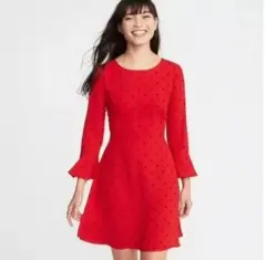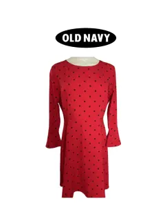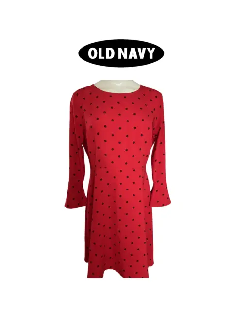 Vestido de lunares Old Navy. Vestido rojo de lunares negros Old Navy talla GCorte línea A, manga flauta acampanada detalle vistoso de crepé en elDorso del vestido.Súper en tendencia, clásico y juvenil a la vez